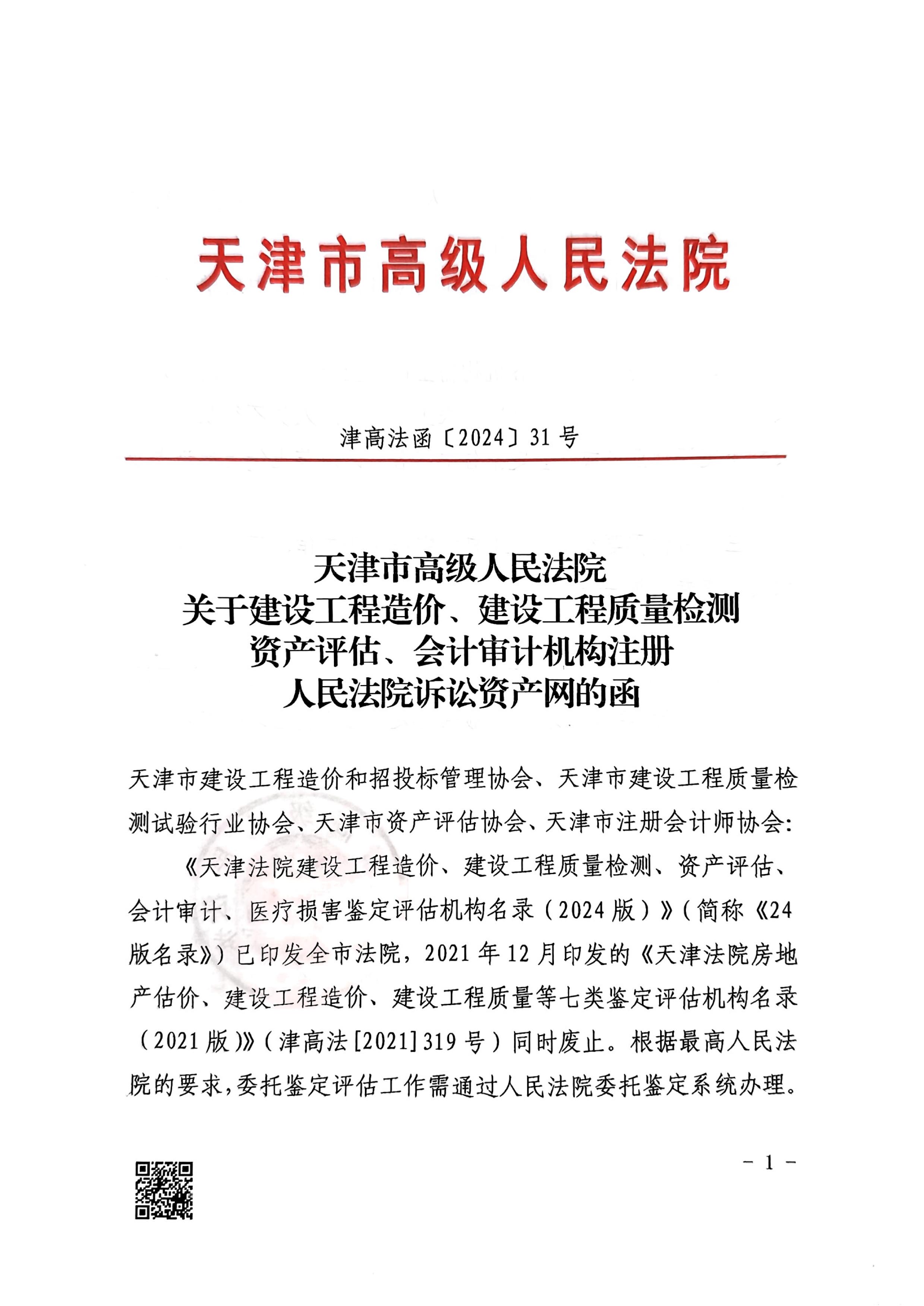2024年天津法院建設(shè)工程造價、建設(shè)工程質(zhì)量、資產(chǎn)評估、會計(jì)審計(jì)、醫(yī)療損害鑒定評估機(jī)構(gòu)名錄