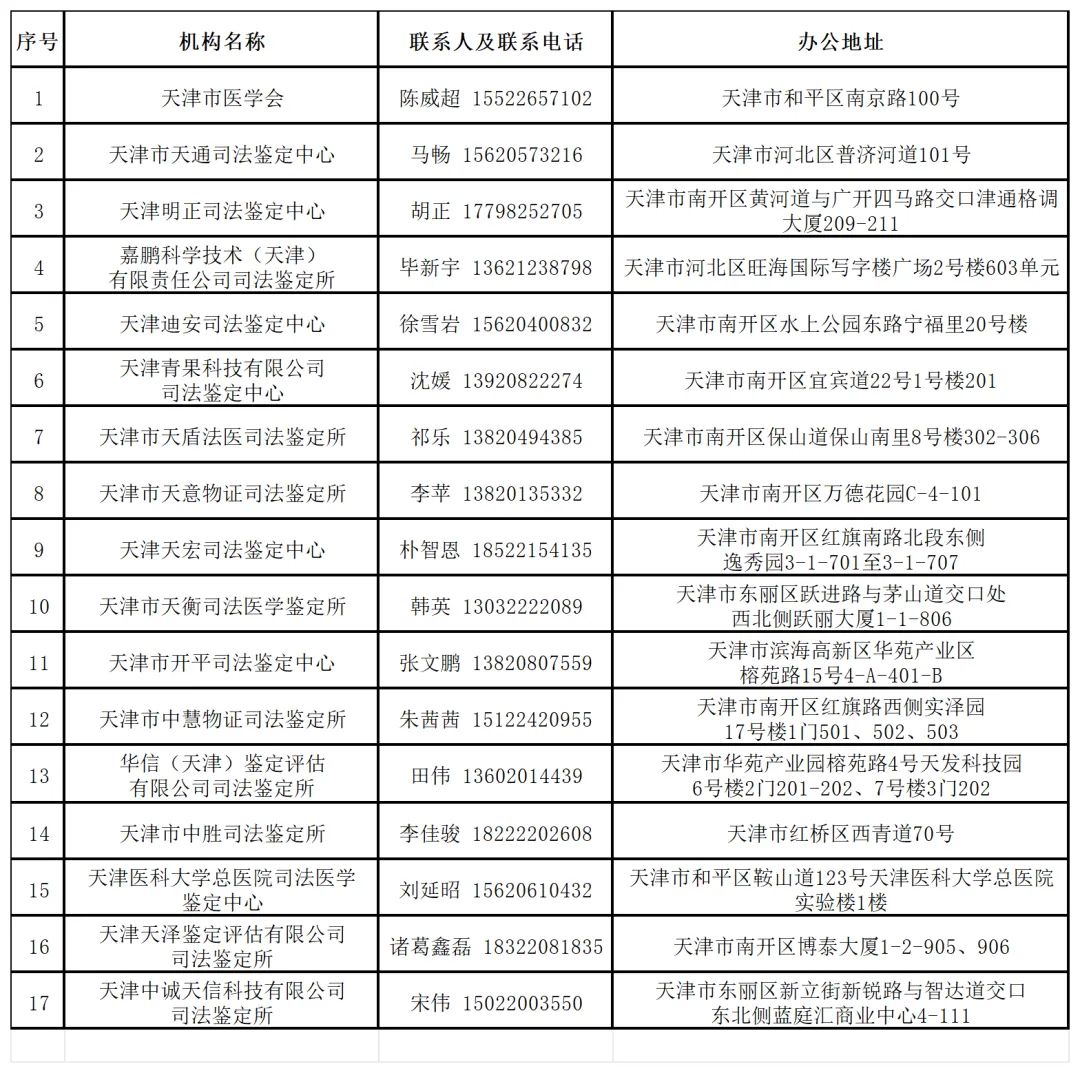 5.天津法院醫(yī)療損害類鑒定評估機(jī)構(gòu)名錄