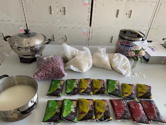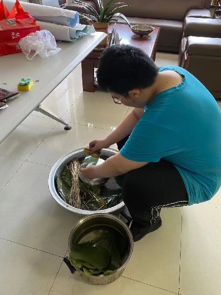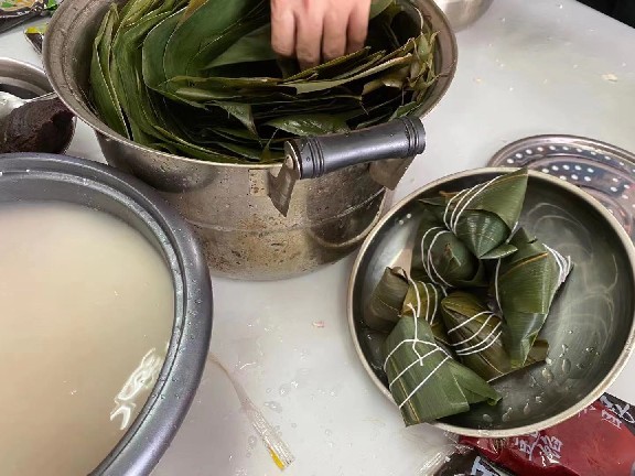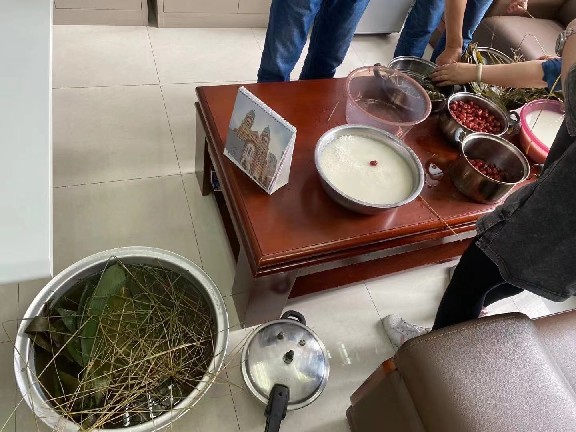 2021年6月11日早晨,許多員工就開始忙碌起來,從家里帶來電磁爐、煮鍋等炊具;事前泡好相應數(shù)量的糯米、準備好餡的配料及包扎的柴繩、粽葉,比賽結(jié)束后幫助煮熟粽子。